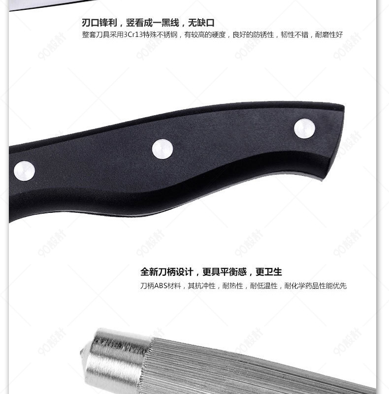 大气 刀具详情 厨具详情页 菜刀 水果刀 切肉刀 黑色背景 火炉 机械 刀架 肉 蔬菜 板子