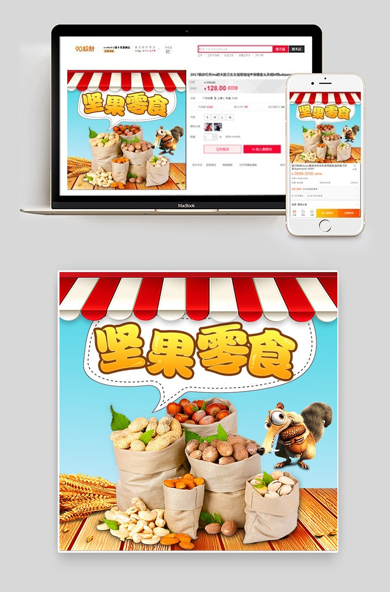 卡通零食坚果主图直通车PSD模版