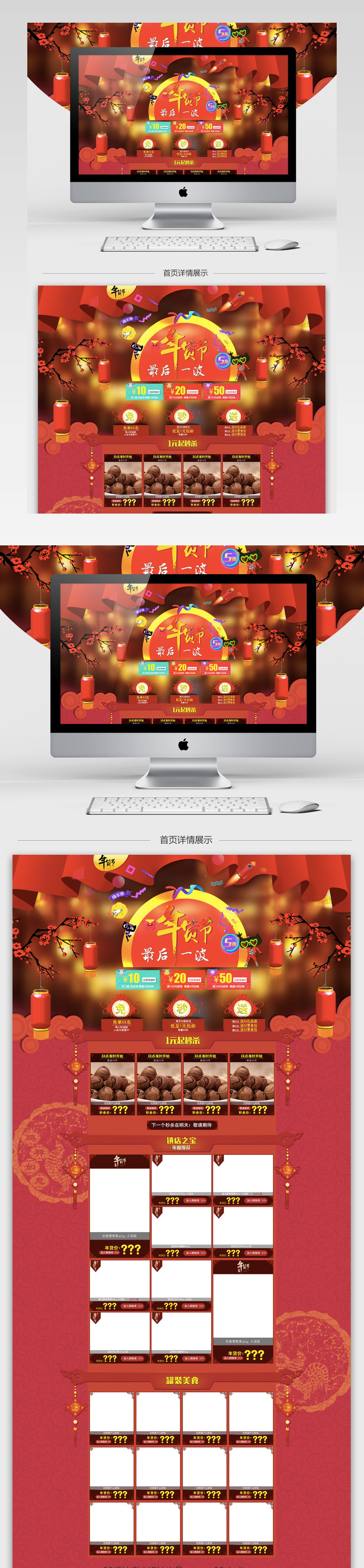 中国风年货节坚果食品店铺首页PSD模版