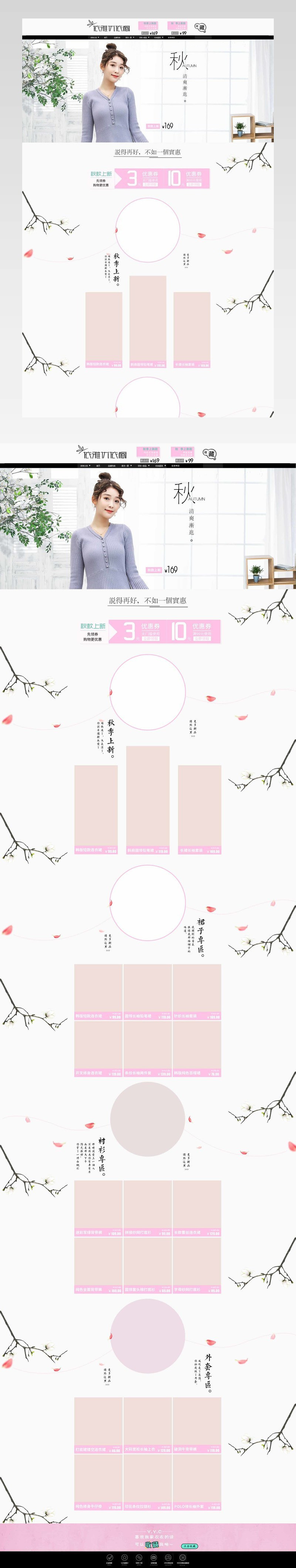 唯美风小清新秋季女装店铺首页模版