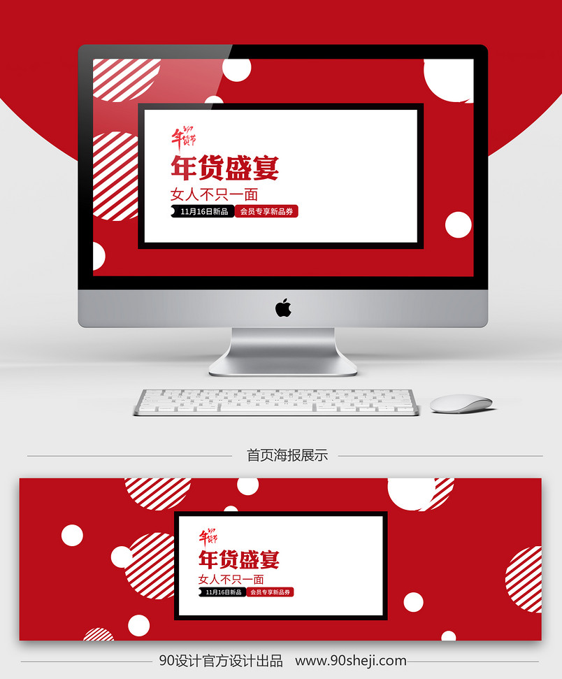 全屏海报 banner 海报 女装海报 促销海报 年货节 喜庆背景 红色背景 活动海报 女装 服装 羽绒 棉衣 针织衫 毛呢大衣