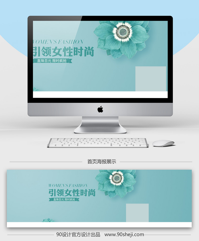 全屏海报 banner 海报 女装海报 春季女装 绿色背景 小清新 唯美风 女装 连衣裙 雪纺衫 衬衫