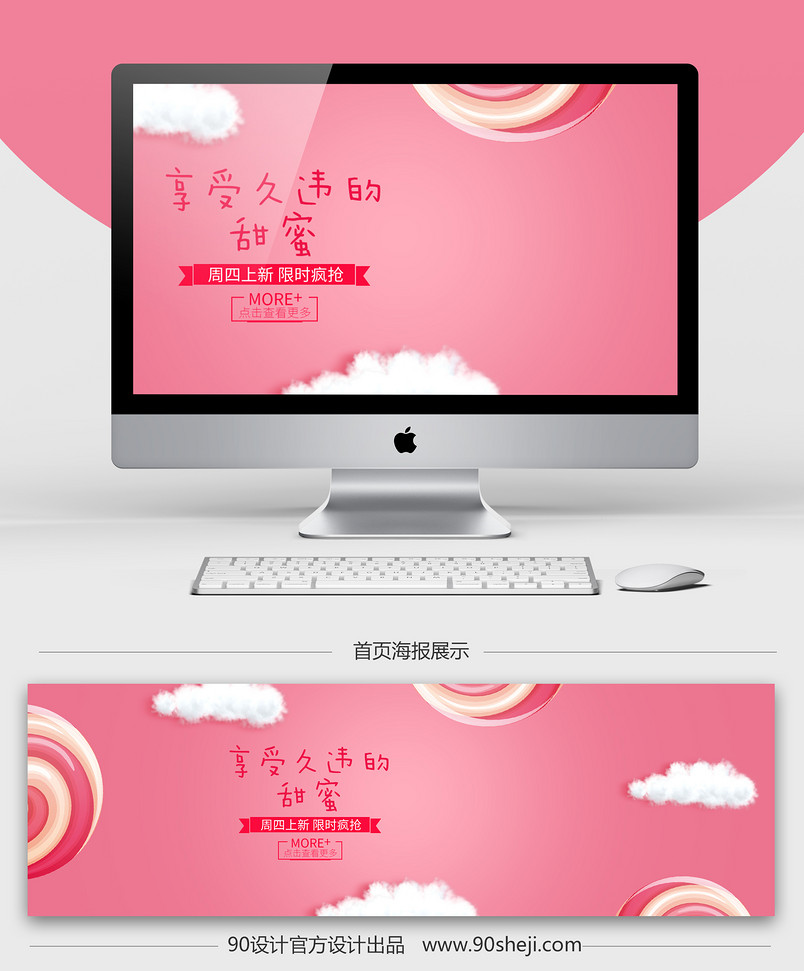 全屏海报 banner 海报 促销海报 女装海报 粉色背景 甜蜜女装 甜美风 唯美风 女装 T恤 衬衫 连衣裙
