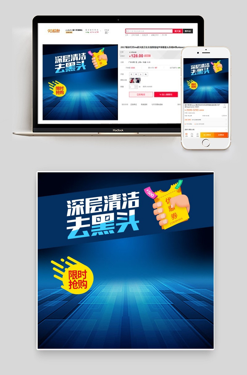 美妆主图 化妆品主图直通车模板 科技 炫酷 去黑头产品直通车图 面膜 爽肤水 精华乳 手握优惠券 限时抢购标签