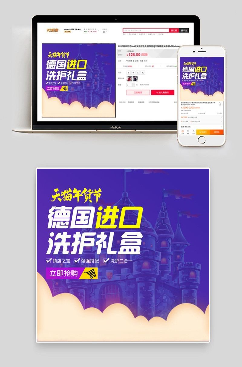 天猫年货节 母婴用品主图直通车 洗护礼盒主图 母婴洗护 奶瓶 奶嘴 购物车 促销 卡通梦幻 加购物车