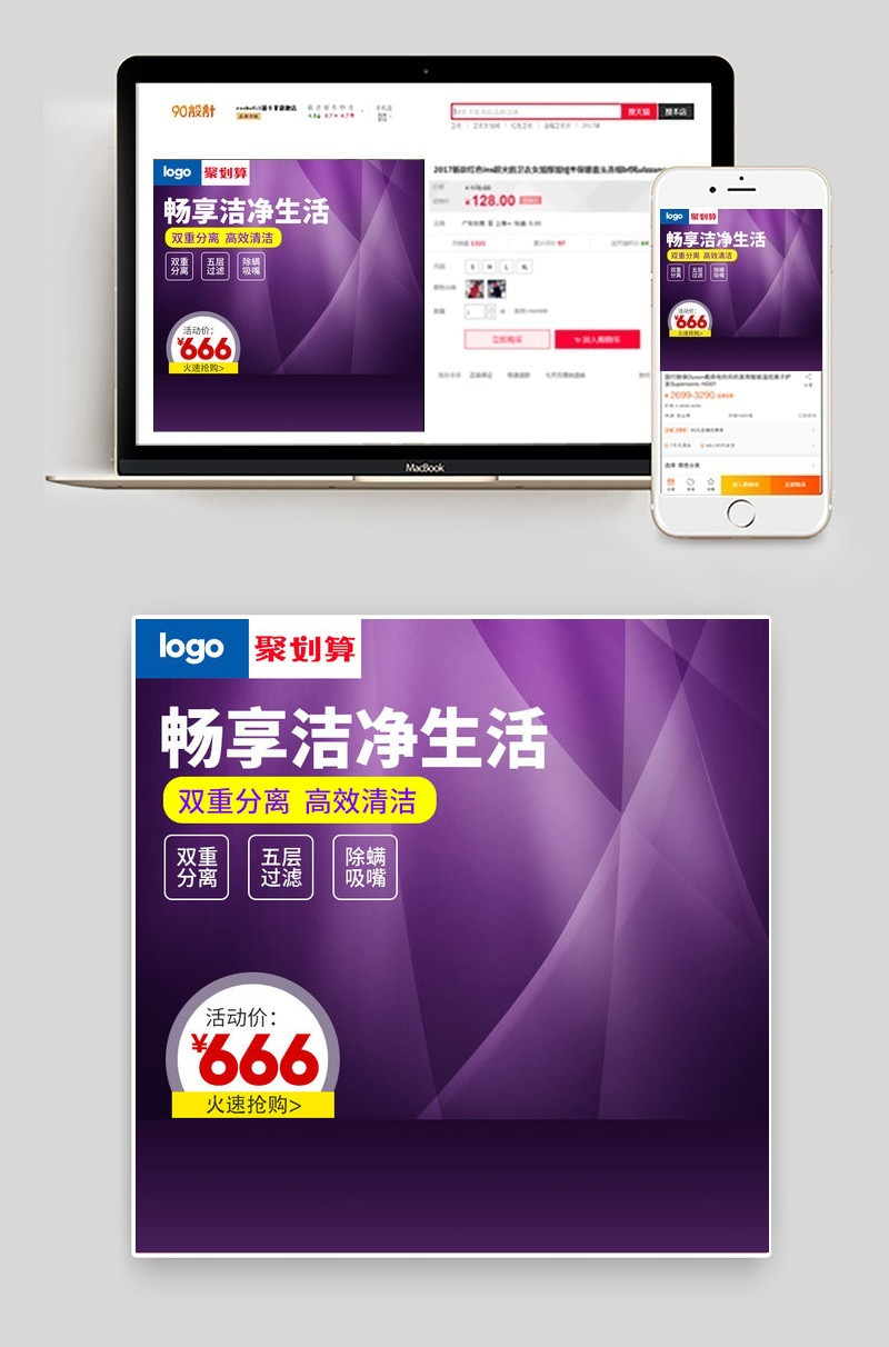 聚划算主图 直通车 生活电器主图 洗衣机主图直通车 挂烫机 烘干机 吹风机 几何背景 大气 紫色背景 立体 几何