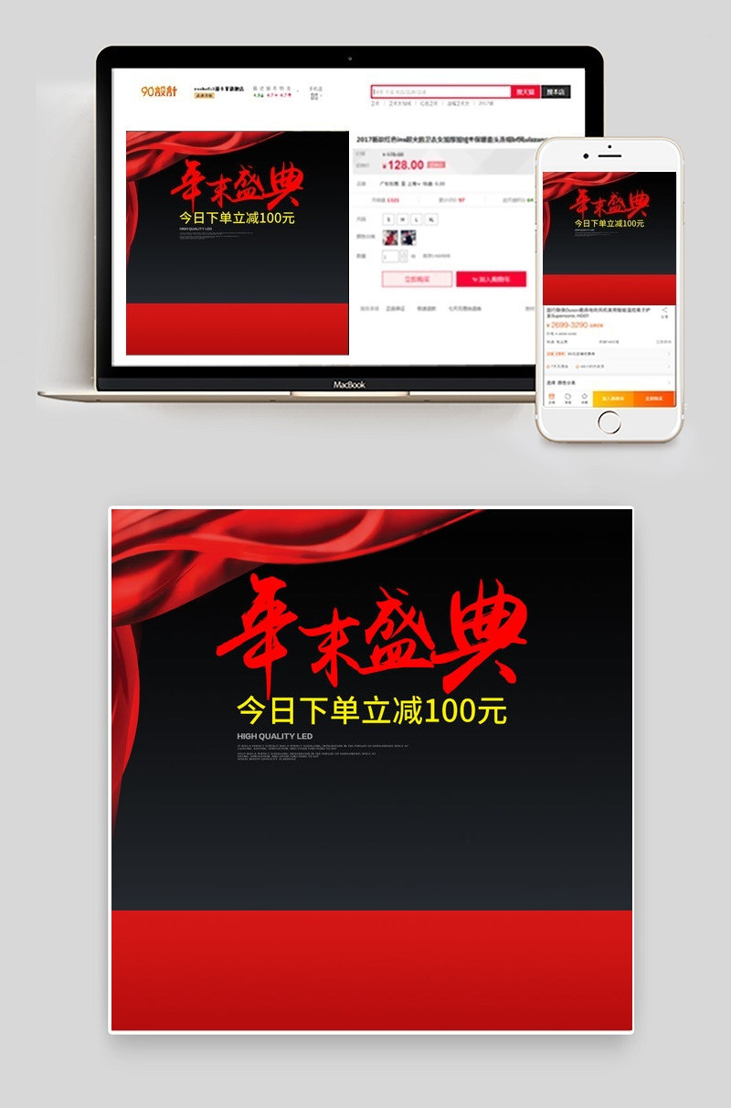 年末盛典 简约 时尚 红色幕布 电器主图 电器直通车 电饭煲 电磁炉 榨汁机 新年主图模板