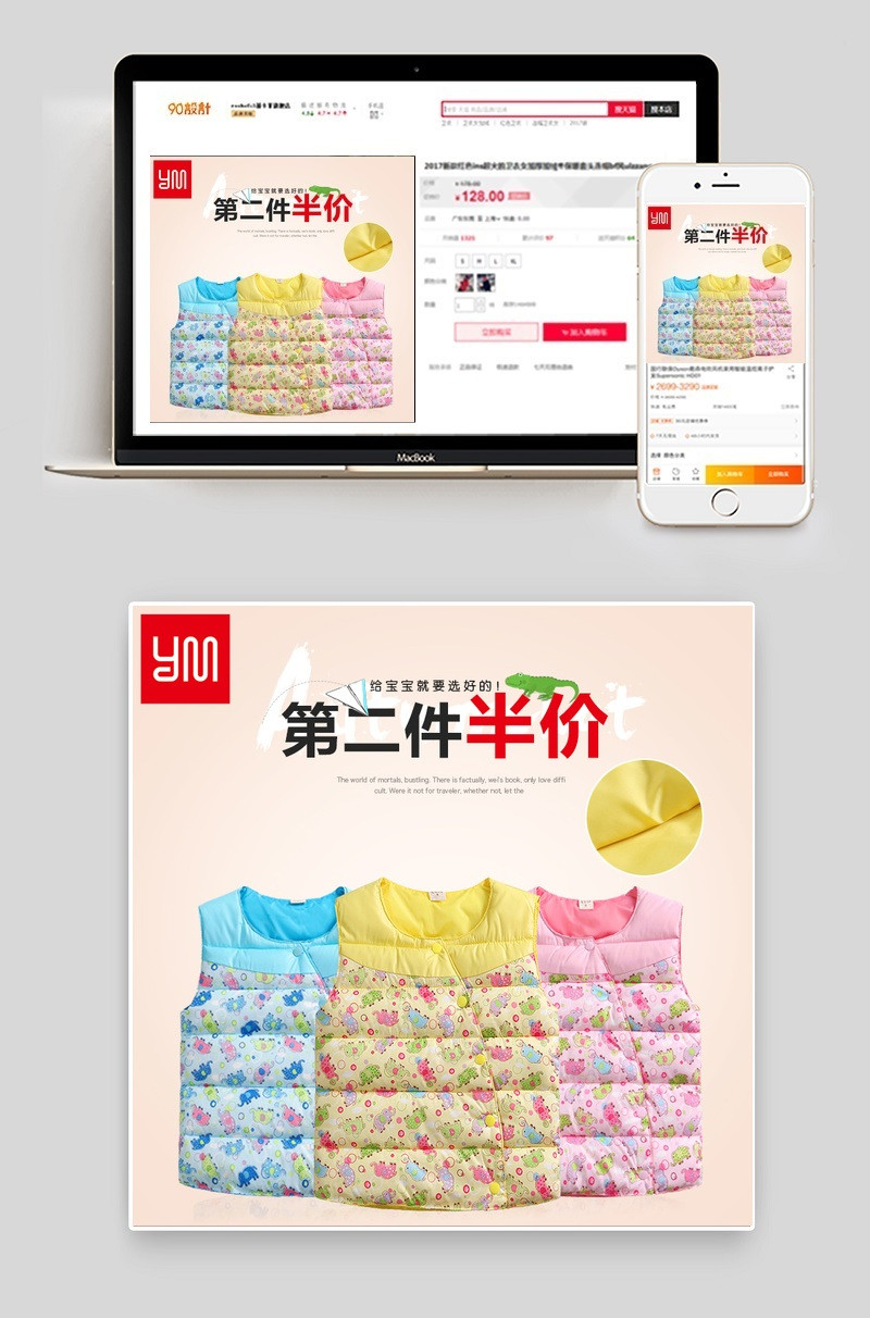 冬季淡黄色简洁童装羽绒马甲主图直通车psd模板