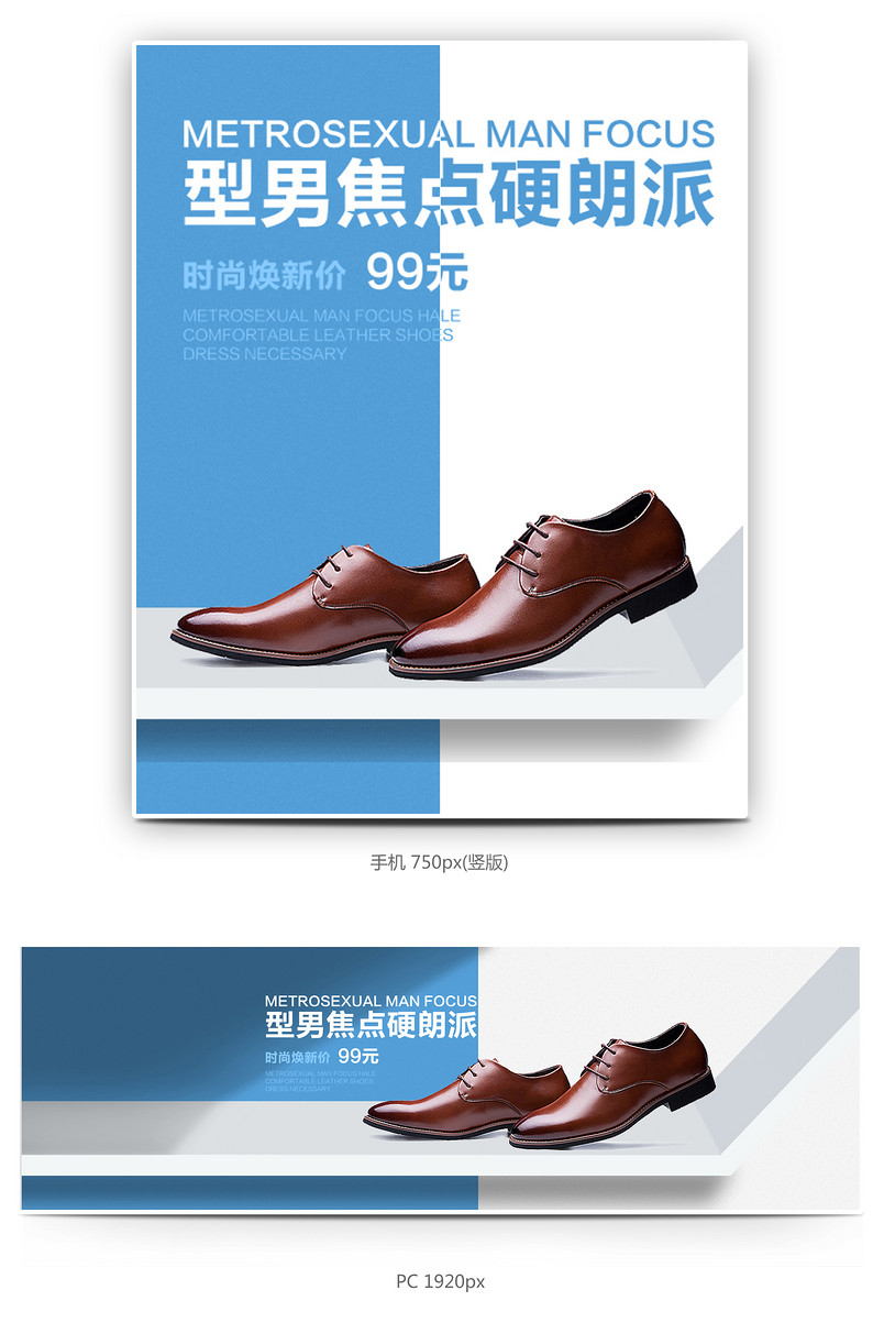 蓝色拼接背景 皮鞋 商务 高档 正装皮鞋 简约 psd模板 首页全屏海报 男鞋 时尚 高端 大气