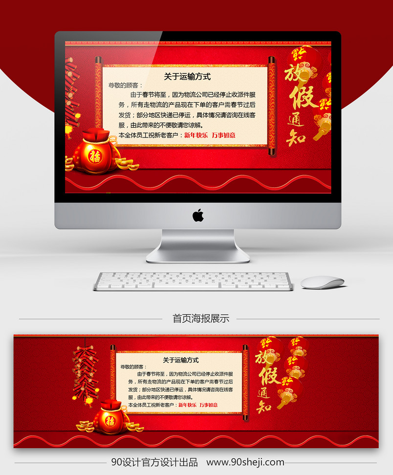 90设计提供新年年货节促销店铺公告海报PSD模版设计素材下载,高清PSD格式。【通用】多类目可用,产品、模特均可替换。【PSD】精细分层,贴好片。【设计】由90设计师独家设计。点击右侧免费下载按钮可进行新年年货节促销店铺公告海报PSD模版淘宝设计素材高速下载。