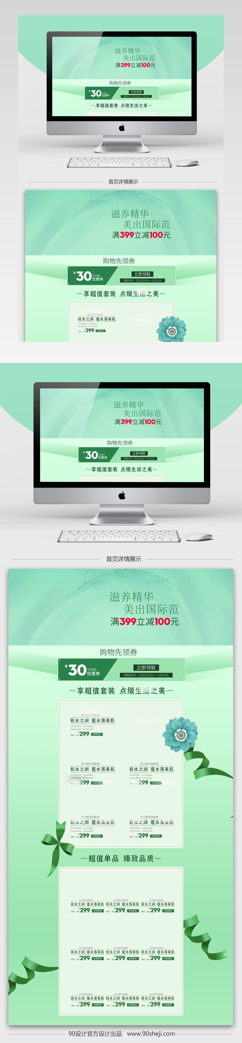 绿色清新美妆护肤店铺装修首页海报PSD