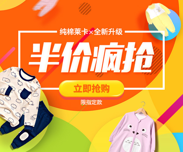 淘宝天猫炫彩扁平半价活动童装钻展素材模板