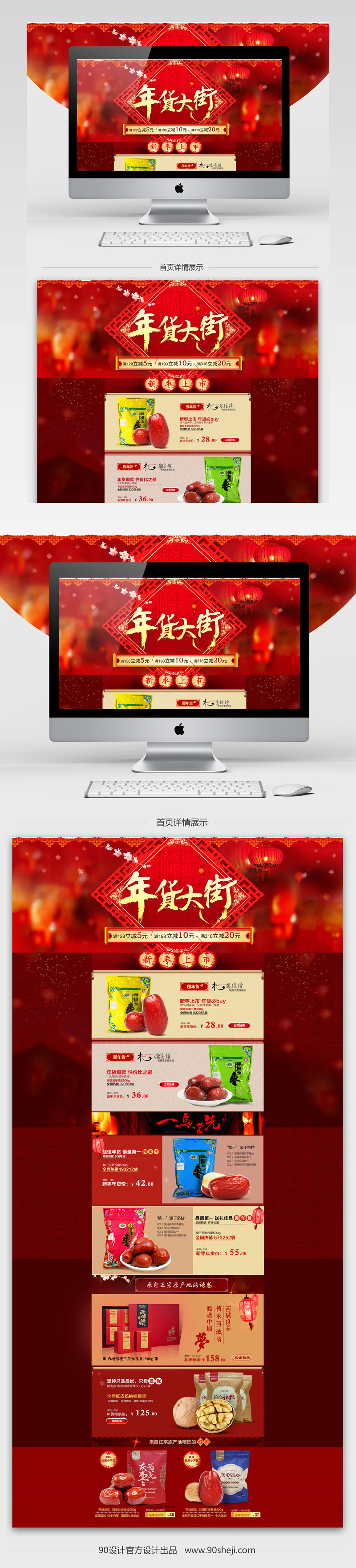 PC端首页 店铺首页 首页装修 食品首页 中国风 年货节 喜庆背景 坚果 核桃 红枣