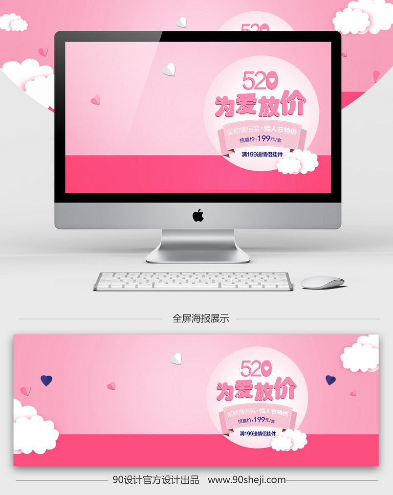 全屏海报 banner 海报 女装海报 表白节 粉色背景 甜美风 T恤 女装 卫衣 针织衫