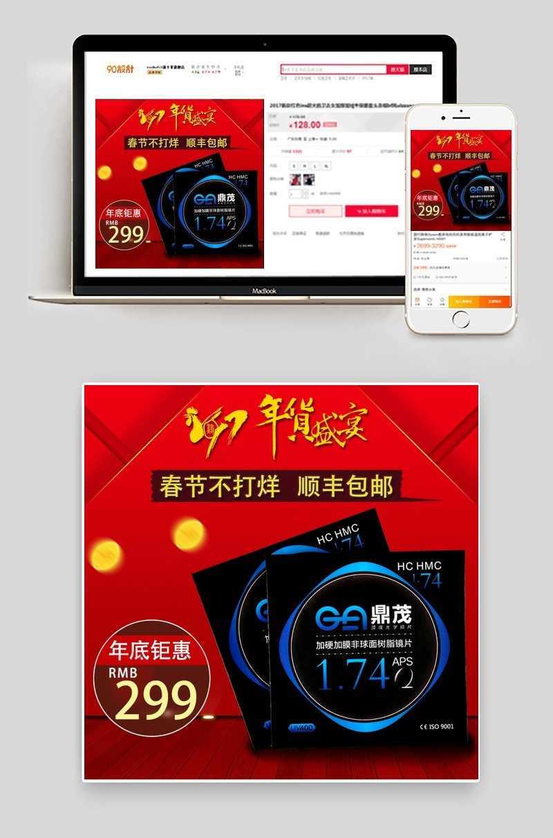 淘宝天猫镜片年货节直通车psd模板