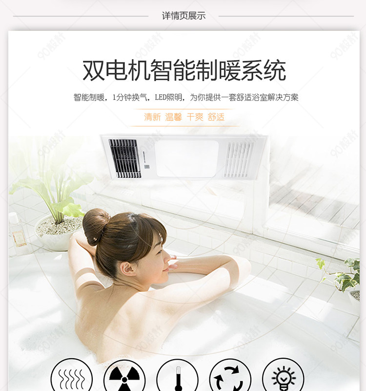 简约 现代 卫浴电器详情页 浴霸详情页 热水器 照明灯 智能 热力循环 美女 鱼缸 树叶 家装