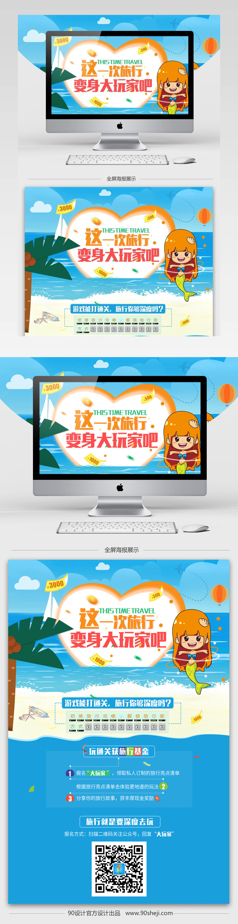卡通 美人鱼 度假 海边 手绘 淘宝 天猫 微信 淘宝专题页 旅行专题页 天猫二级页面 旅行大玩家 玩游戏 psd模板 素材模板 分层模板 伊樱苒苒