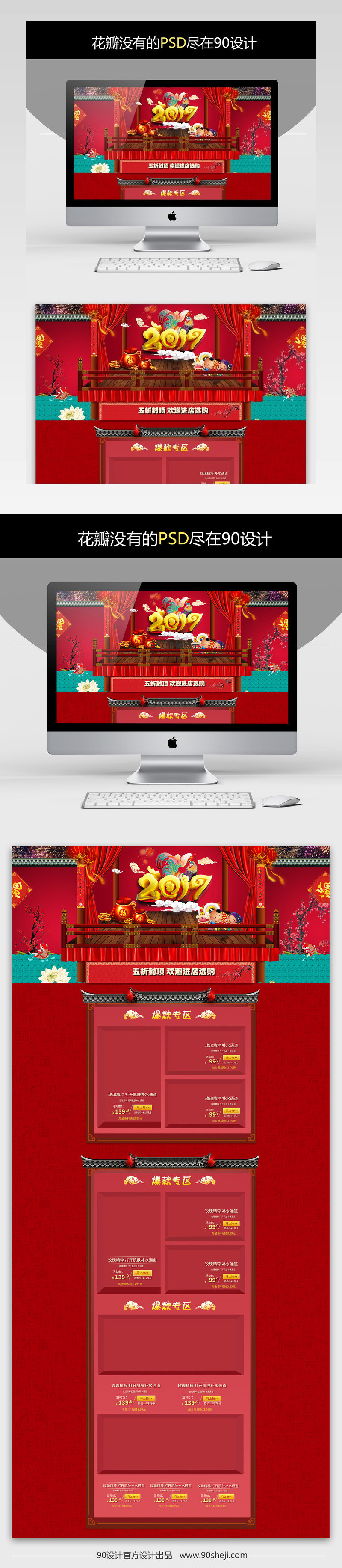 90设计提供中国风新年促销美妆产品店铺首页PSD模版设计素材下载,高清PSD格式。【通用】多类目可用,产品、模特均可替换。【PSD】精细分层,贴好片。【设计】由90设计师独家设计。点击右侧免费下载按钮可进行中国风新年促销美妆产品店铺首页PSD模版淘宝设计素材高速下载。
