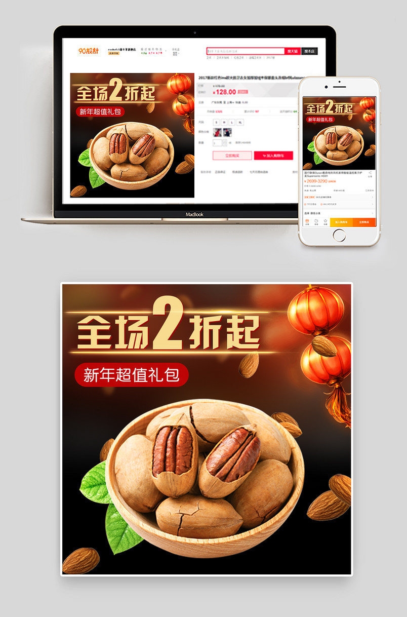 唯美风淘宝天猫年货节零食坚果主图直通车PSD模版