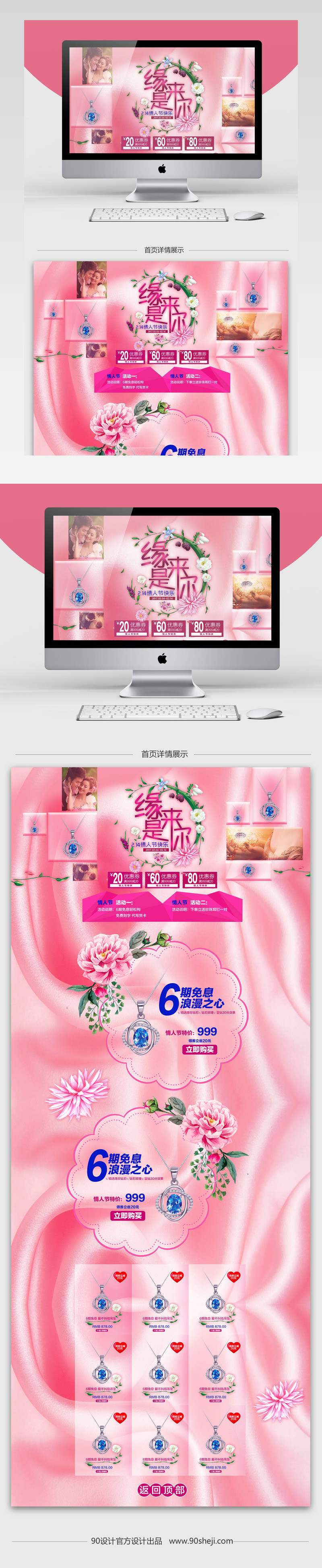 PC端首页 店铺首页 首页装修 珠宝首页 浪漫 唯美风 小清新 情人节 首饰 珠宝 项链 戒指 吊坠
