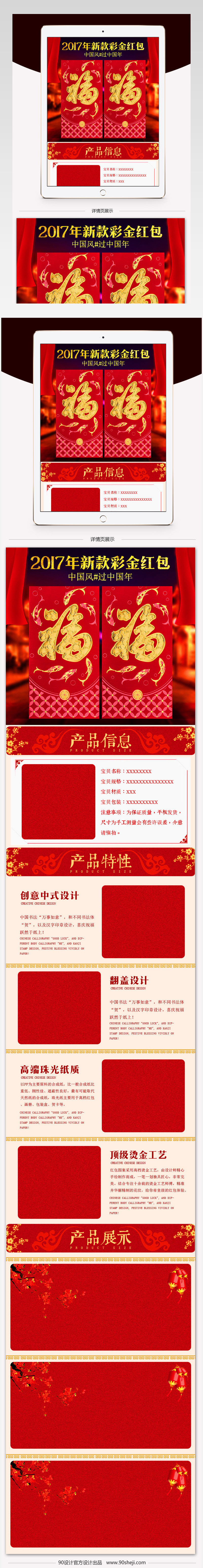 淘宝天猫 鸡年年货节 红色中国风 卡通烫金红包 详情psd模板 卡通红包 创意新年红包 淘宝红包详情 鸡年红包详情 年货节 中国风详情 红色详情页 中国风红包详情 卡通鸡 2017年货节 火凤凰创意设计 紅包 利是封