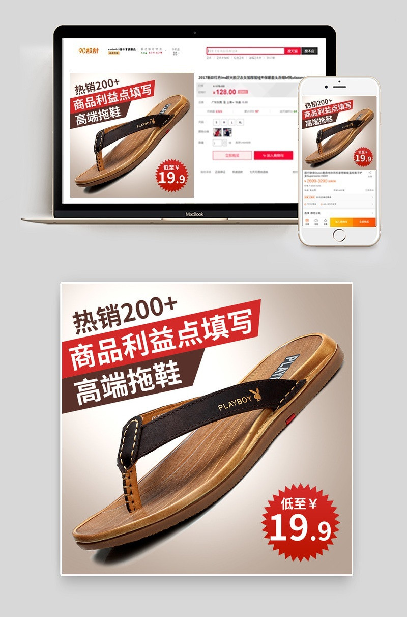 天猫淘宝简约男鞋人字拖主图直通车psd模板