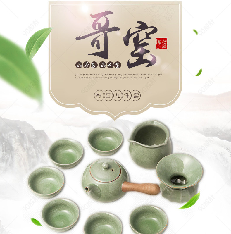 厨具中国风哥窑茶具详情页psd模板