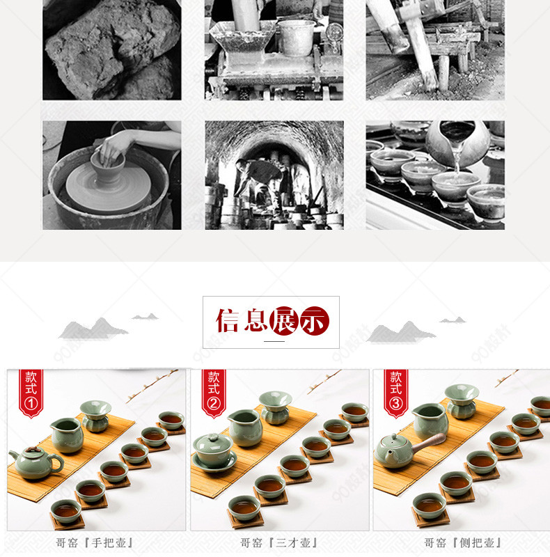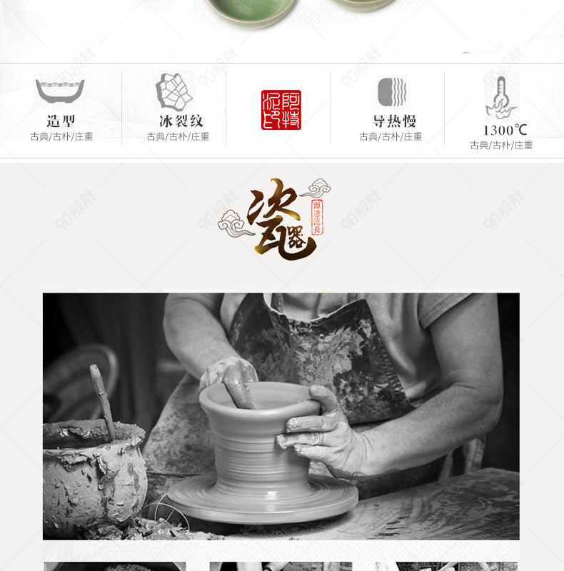90设计提供厨具中国风哥窑茶具详情页psd模板设计素材下载,高清PSD格式。【通用】多类目可用,产品、模特均可替换。【PSD】精细分层,贴好片。【设计】由90设计师独家设计。点击右侧免费下载按钮可进行厨具中国风哥窑茶具详情页psd模板淘宝设计素材高速下载。