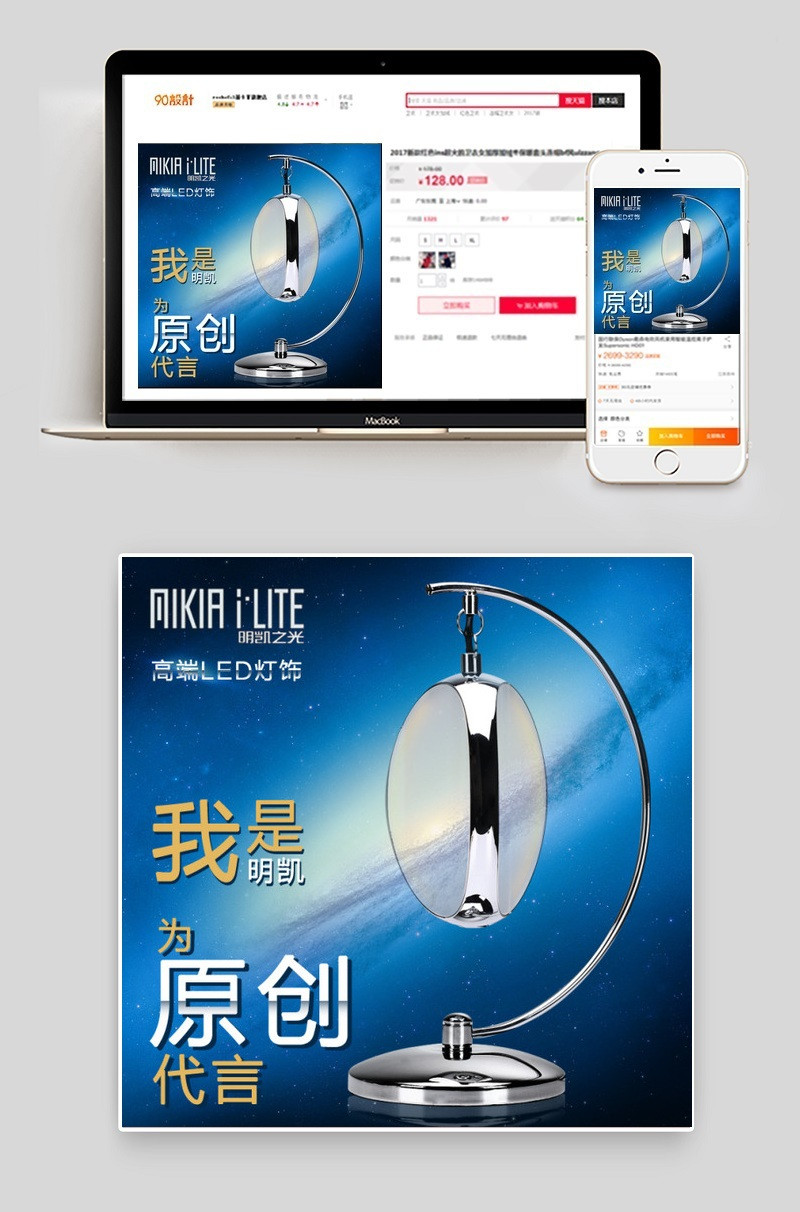 淘宝直通车主图蓝色底背景月光灯具