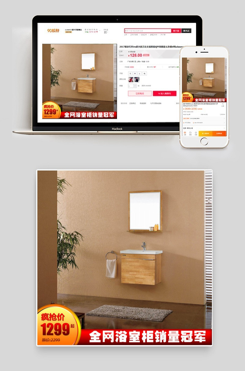 疯抢价 天猫主图 销量冠军 红黄底 浴室柜 价格促销 背景图主图 疯狂促销 高清主图