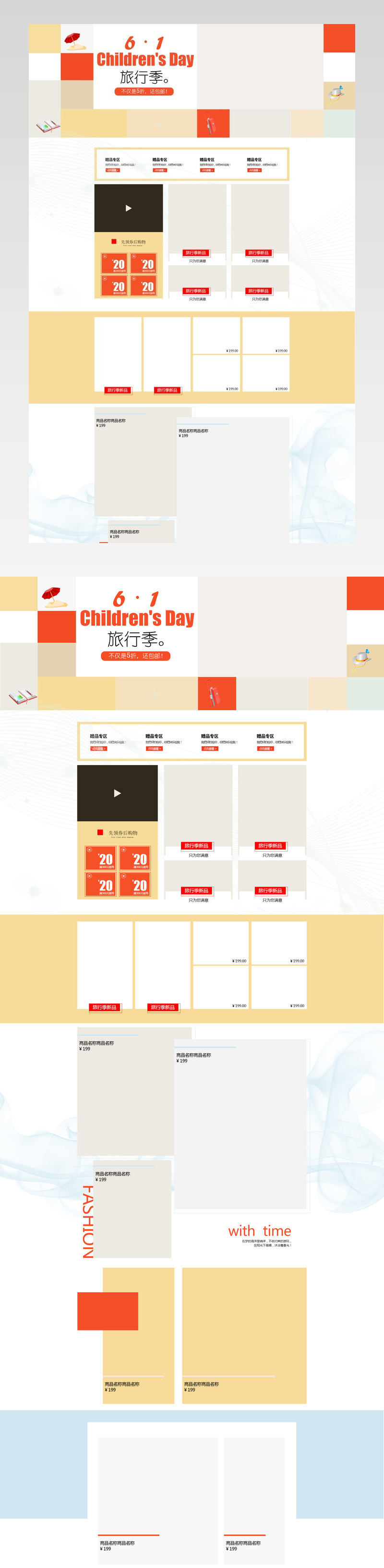 90设计提供大六一旅行季通用店铺首页PSD模板设计素材下载,高清PSD格式。【通用】多类目可用,产品、模特均可替换。【PSD】精细分层,贴好片。【设计】由90设计师独家设计。点击右侧免费下载按钮可进行大六一旅行季通用店铺首页PSD模板淘宝设计素材高速下载。