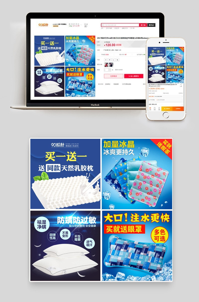 夏季清凉乳胶枕冰枕枕头蓝色背景主图psd