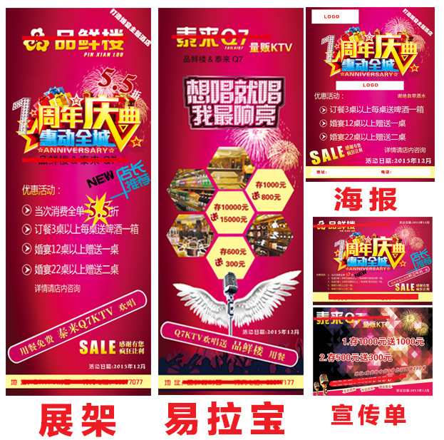 1周年店庆 酒楼 KTV 展板 展架 海报 传单 设计稿 PSD源文件 疯狂让利