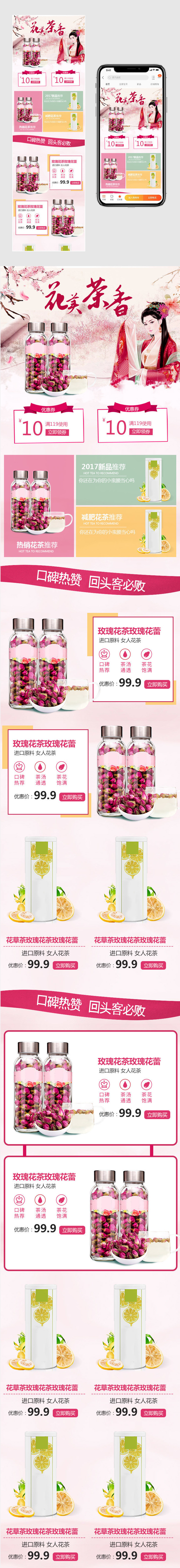 90设计提供花茶手机端专修PSD模版设计素材下载,高清PSD格式。【通用】多类目可用,产品、模特均可替换。【PSD】精细分层,贴好片。【设计】由90设计师独家设计。点击右侧免费下载按钮可进行花茶手机端专修PSD模版淘宝设计素材高速下载。