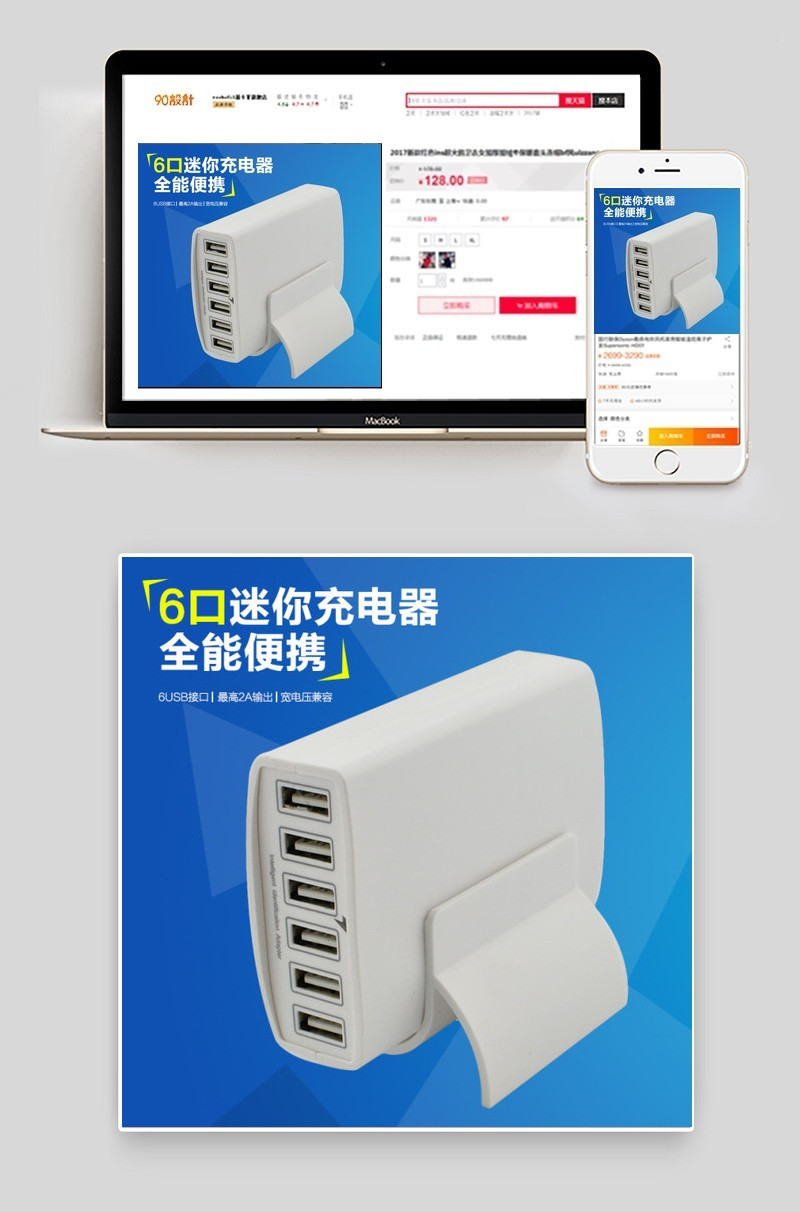 充电器主图推广图直通车钻展免费下载 背景 淘宝 推广图 页面 6口USB