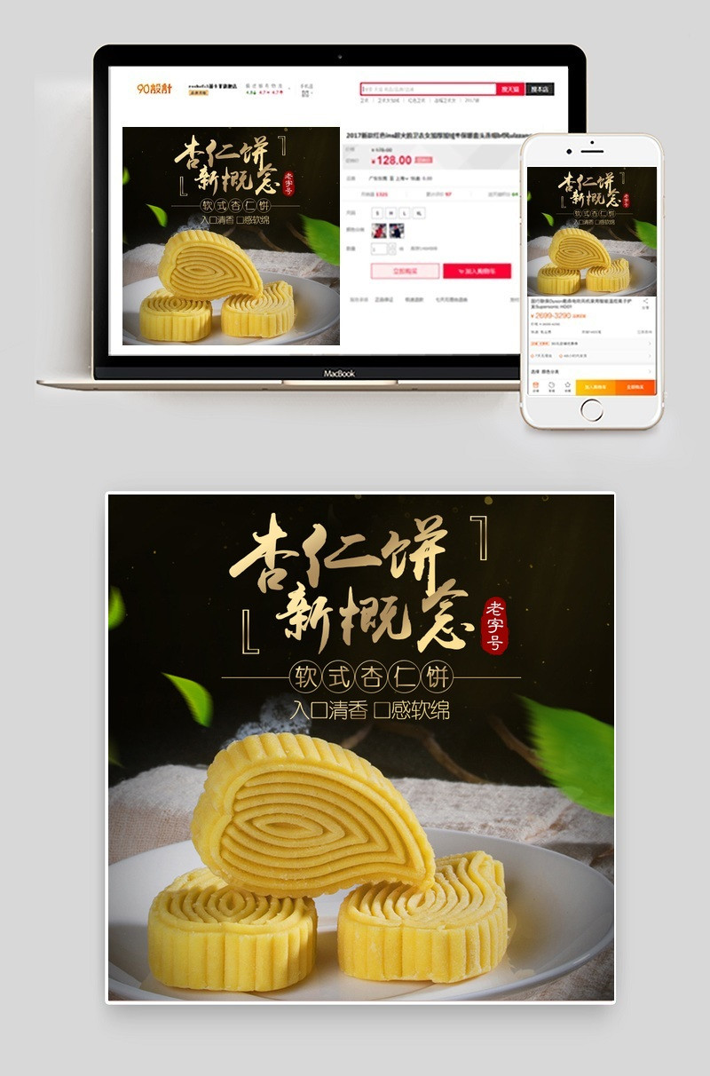黑色简约背景传统小吃糕点杏仁饼主图直通车模板PSD
