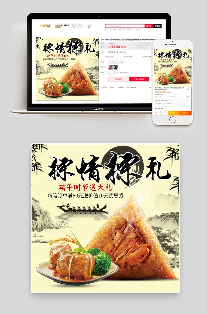 端午节粽子水墨唯美中国风主图直通车PSD模版分层
