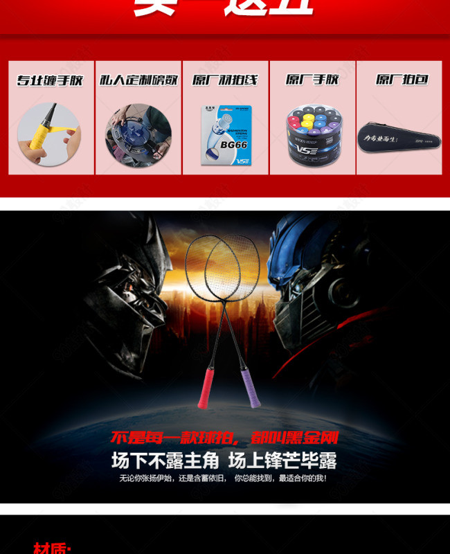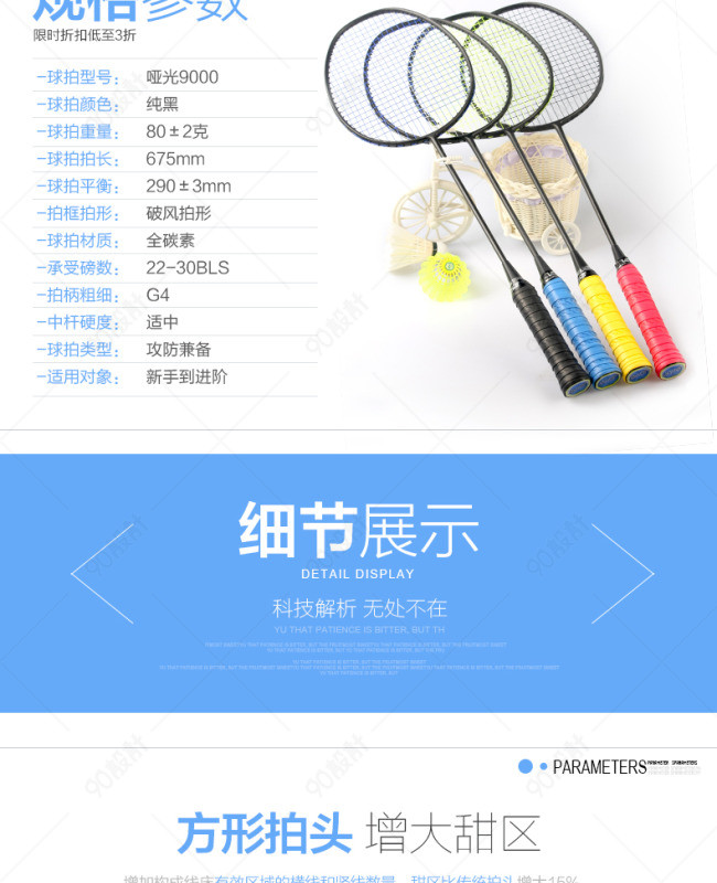 淘宝天猫哑光羽毛球拍详情页描述页内页