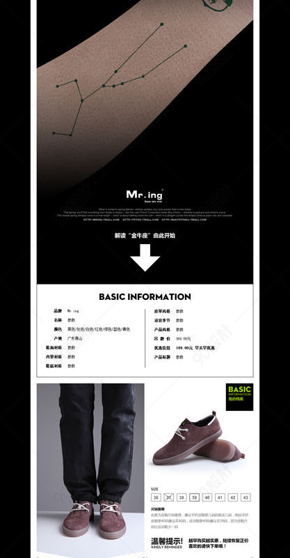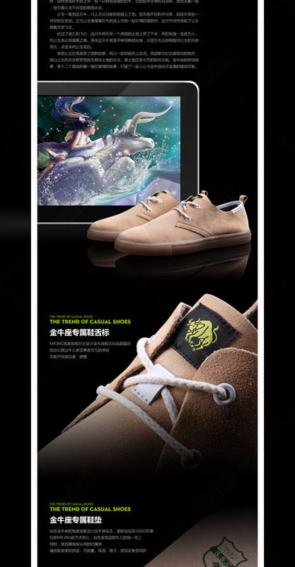 PSD文件 PSD分层文件 网页设计 网店设计 淘宝网店 网店模板 宝贝描述 细节描述 男鞋 休闲男鞋 金牛座男鞋 金牛座