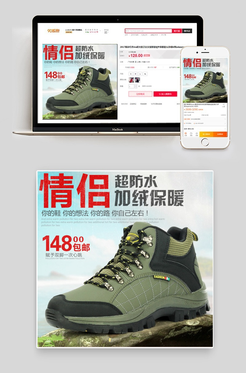 淘宝棉鞋主图设计 情侣登山鞋 棉鞋直通车主图设计