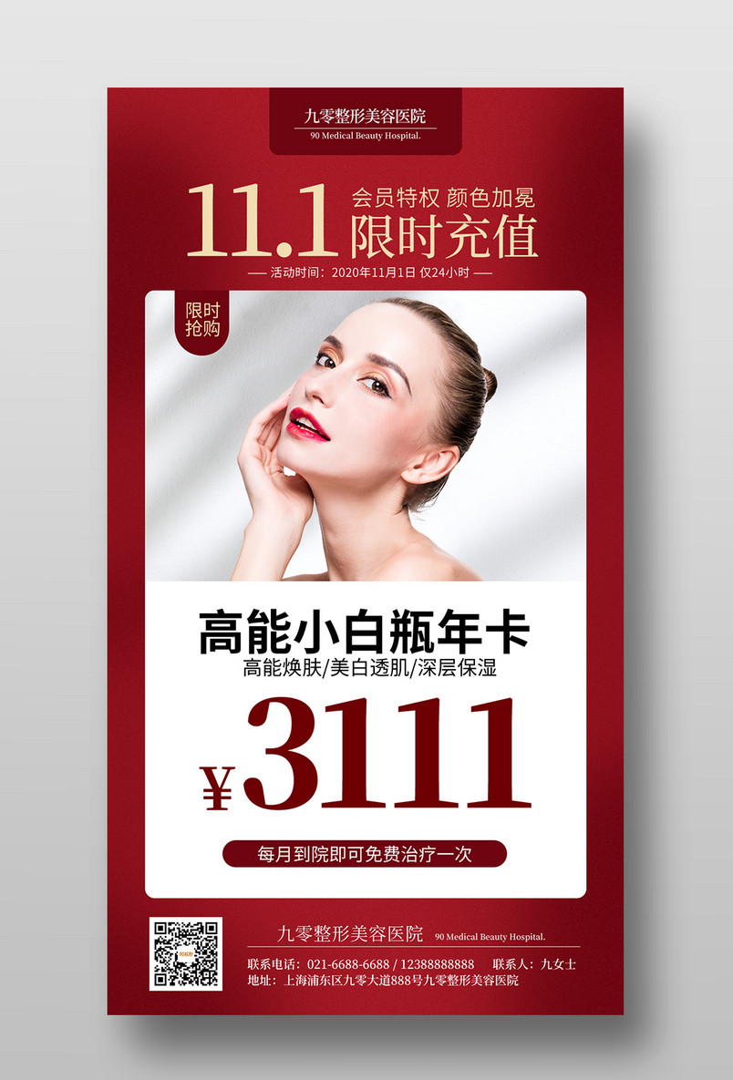 红色简约美容整形微整未了办卡热玛吉皮肤管理海报