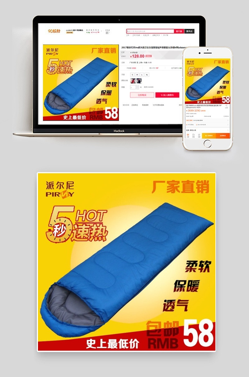 淘宝睡袋促销直通车主图psd素材免费下载 睡袋直通车图片 睡袋主图素材 睡袋促销 淘宝睡袋主图