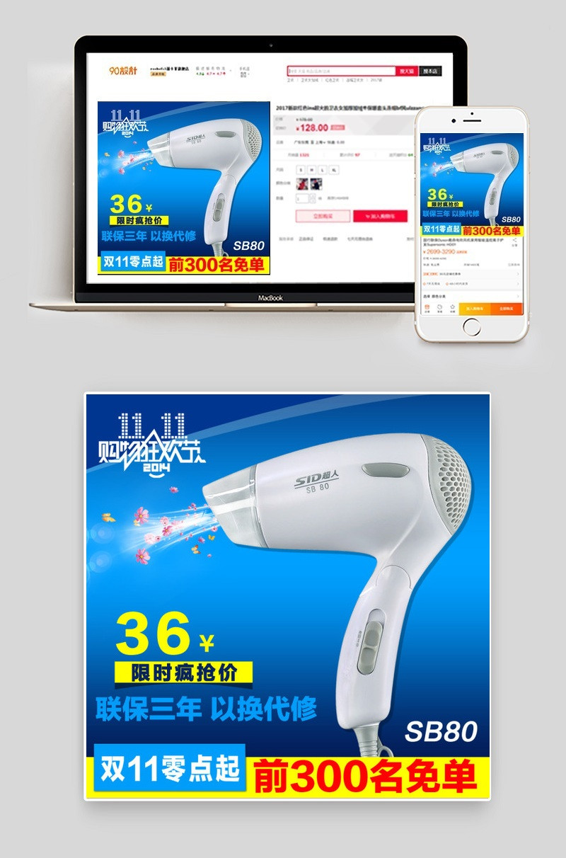 淘宝主图 吹风机主图 生活电器主图 直通车图 活动主图 蓝色主图