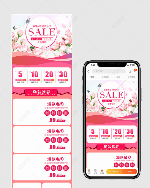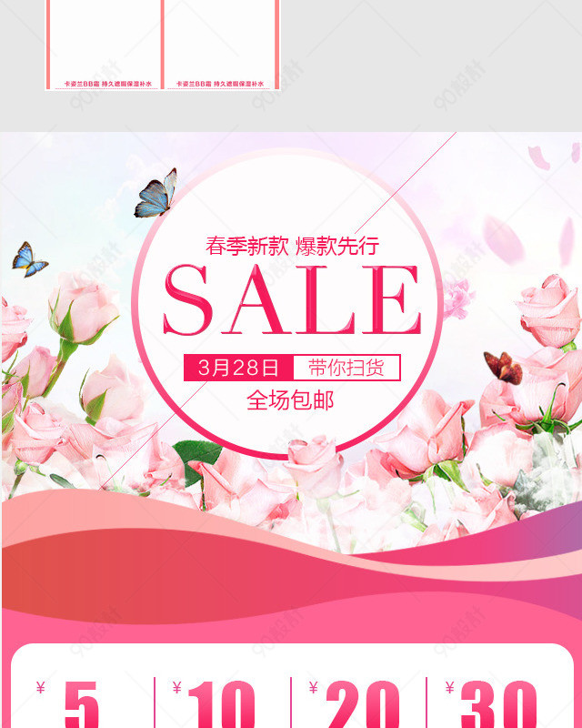 粉色唯美风春季促销手机端首页化妆品美妆无线端psd模板