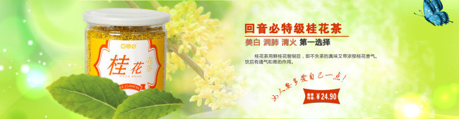 春季淘宝桂花茶店铺促销海报psd素材 桂花茶图片 春季促销 回音必 特级桂花茶 玫瑰桂花茶 茶叶 桂花茶功效