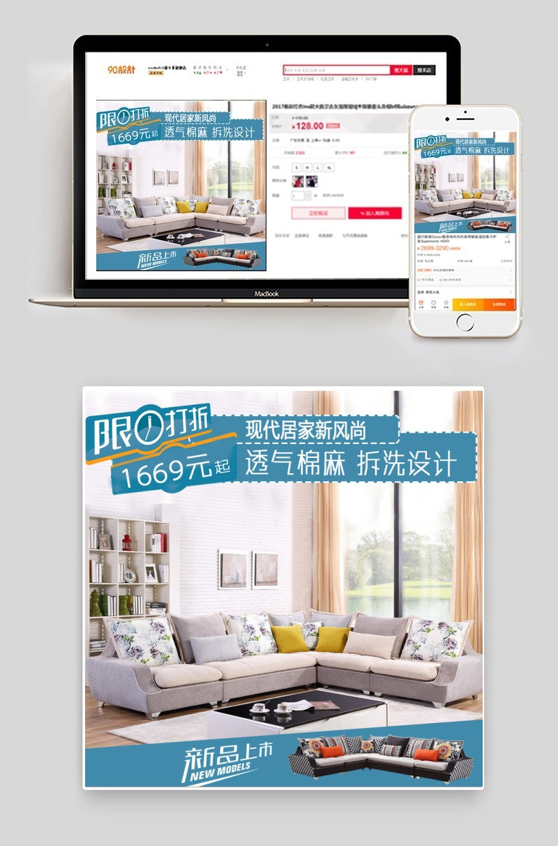 创意 直通车图 沙发场景 沙发 背景合成 场景合成 布艺沙发直通车 PSD分层文件 800*800 主图 沙发主图