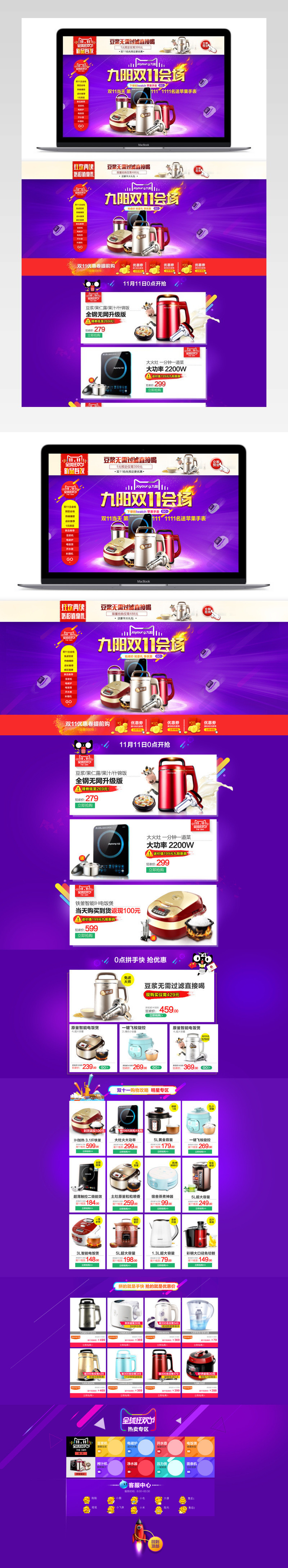 炫酷风双11智能厨房电器店铺首页PSD模版