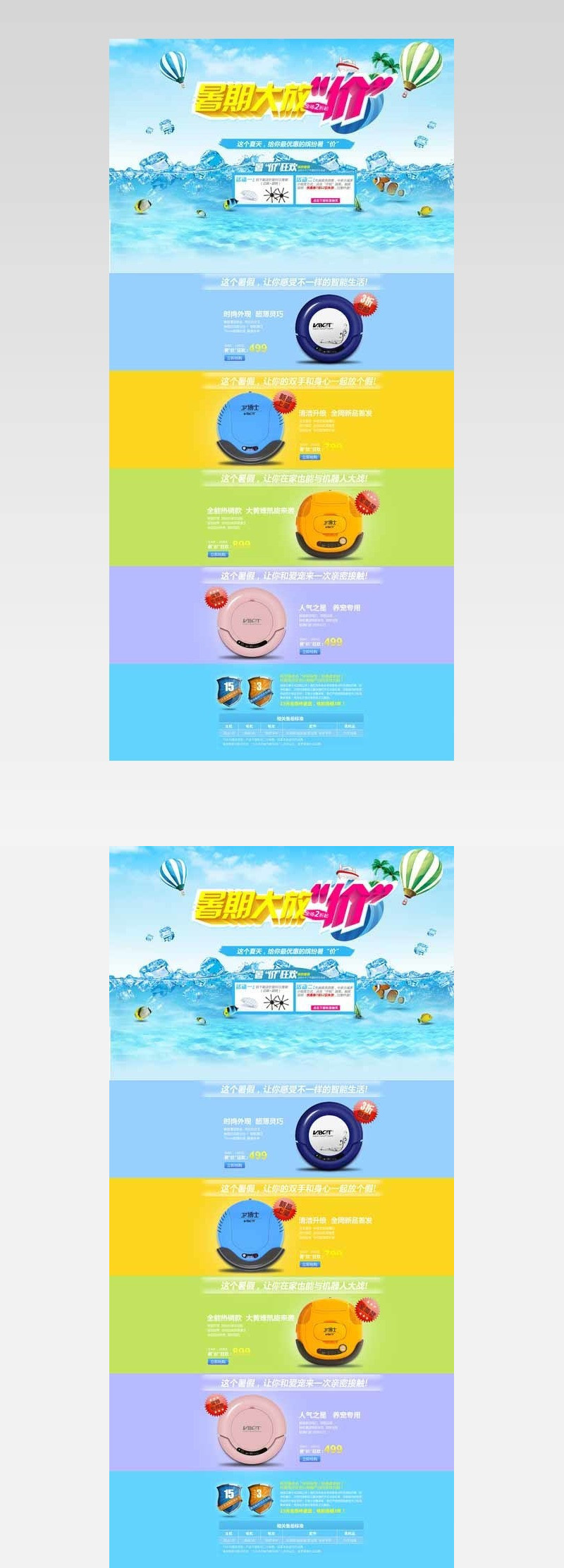 大放价 暑期 扫地机 蓝色海洋 五彩 设计 淘宝界面设计 淘宝装修模板 300DPI PSD