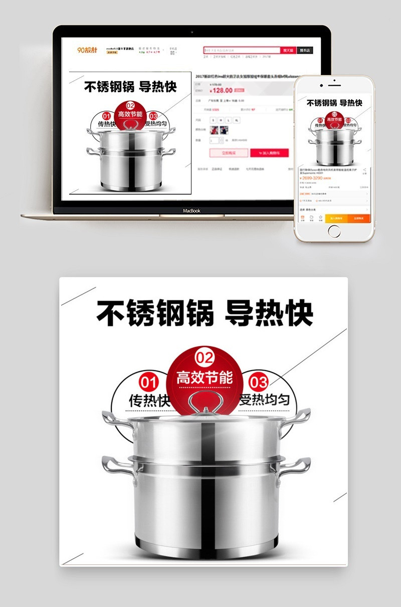 90设计提供304不锈钢厨房美食精修双层蒸锅直通车图设计素材下载,高清PSD格式。【通用】多类目可用,产品、模特均可替换。【PSD】精细分层,贴好片。【设计】由90设计师独家设计。点击右侧免费下载按钮可进行304不锈钢厨房美食精修双层蒸锅直通车图淘宝设计素材高速下载。
