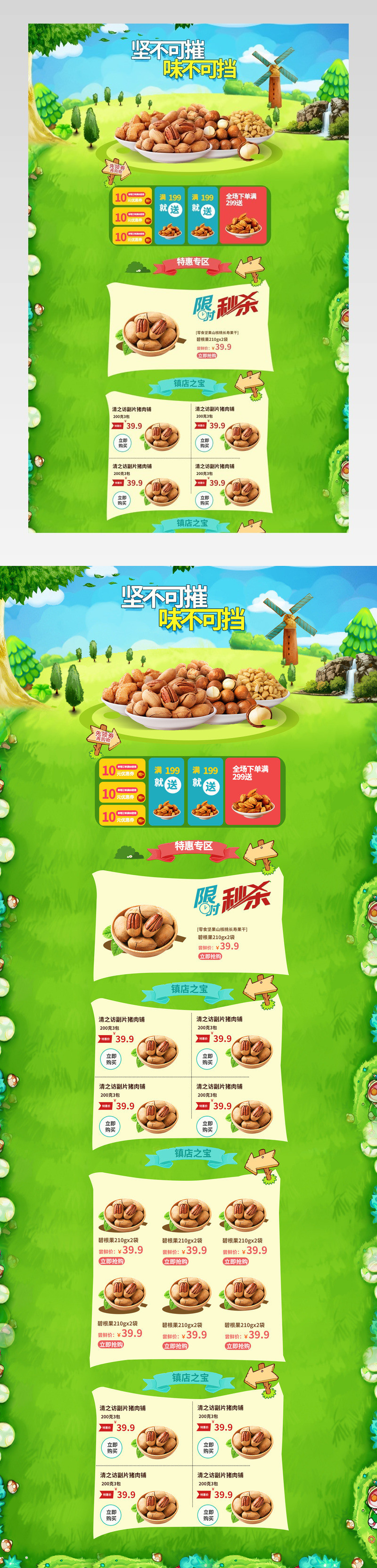 活动促销零食绿色时尚简约卡通风首页psd模板